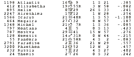 Development one involves news about the Russian astrology conference this fall. They have received the word that the prices are too high for astrologers, and they have reduced both the conference fee and the hotel costs by about half. The conference is now priced at $250 and the hotel is $40 a night each for a shared room. A single room is $60. The food is $25 a day which includes all three meals and bar privileges. I’m not sure how many drinks are included in that. Transportation between the airport and the hotel is also included in these prices. The conference will be held outside of Moscow to permit the cheaper hotel prices. I’m still not going to be able to go—too much happening with our prospective purchase of property near San Diego, and other trips already planned, but if any of our readers are able to go, I would be delighted to get a report which we could include in either The Mutable Dilemma or Asteroid-World. To register for the conference or to receive additional information, write to International Joint Venture “Intercontact”, Luzhniki 24 BSA, room 86, 119048 Moscow, U.S.S.R. If you are in a hurry, try a Fax to 200 22 16, att. Farida #001539 or Fax: 9230748.