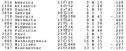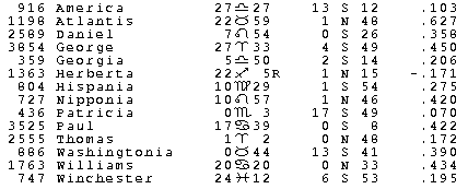 Dr. Bremer has sent us more helpful information on the former Soviet Union. [Not in the web archives.] I debated holding it for the next issue of the Asteroid World when I want to look again at the Russian etc. charts, but readers can save their Asteroid-Worlds for future reference. I am still looking for a time for the meeting in Minsk when Yeltsin and the leaders of Ukraine and Belarus signed their agreement to form the new Commonwealth of Independent States. I’ll be seeing Farida Asadullina, the Moscow psychologist-astrologer, at the UAC conference in April, and she might have some information. Hope to also see some of our readers at UAC.